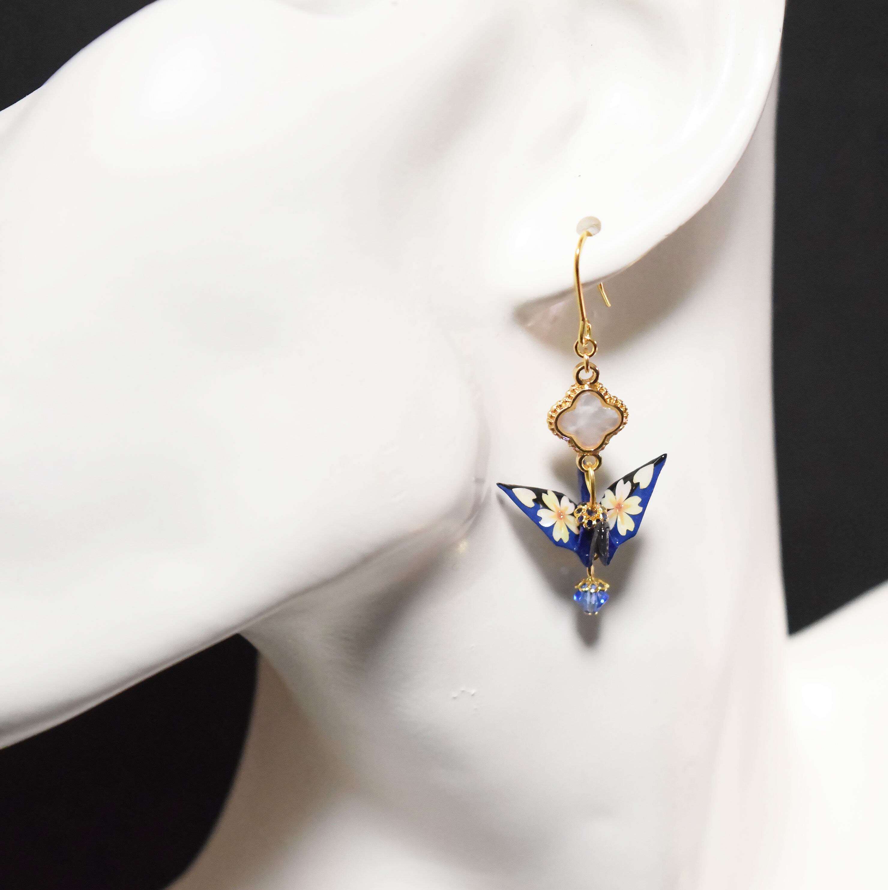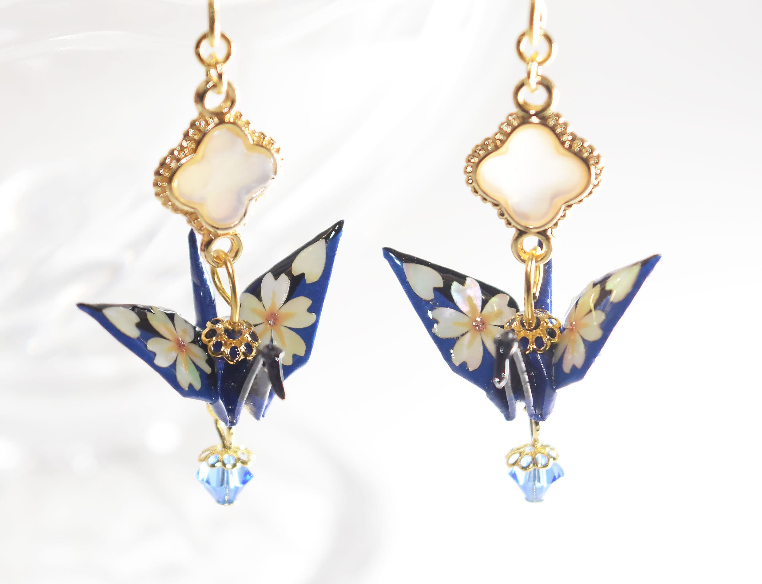 桜螺鈿折り鶴ブルーxブラックマザーオブパール