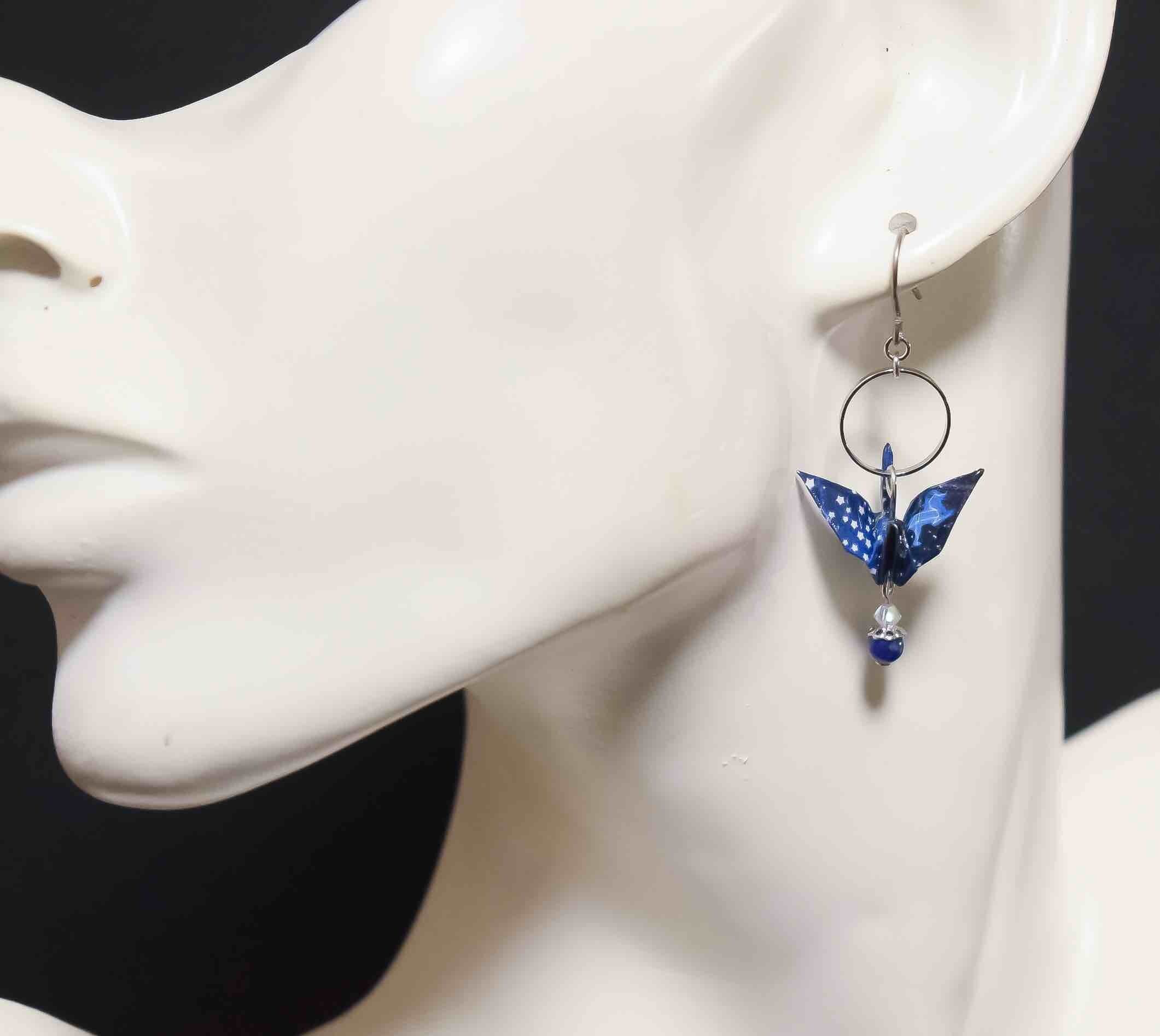 折鶴の羽に星座のマークが。。 <サイズ> 折鶴 H-1.3cm w-2cm ラピスラズリ 4mm スワロフスキーグラスビーズ 3mm <ピアス> チタン ※お使いのパソコン等の使用環境により色等が少し異なる場合があります。 ※イヤリング、ノンホールピアス、樹脂ピアス等変更を希望される場合は問い合わせフォームより連絡してください。